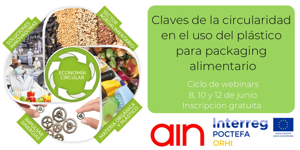 En el marco del proyecto europeo ORHI (incluido en el Programa Interreg POCTEFA) de impulso de la Economía Circular en la cadena alimentaria, en el que AIN participa, y con el fin de ayudar al sector agroalimentario a identificar soluciones para conseguir aumentar la circularidad de sus flujos de materias plásticas, hemos organizado un ciclo de webinars “Claves de la circularidad en el uso del plástico para packaging alimentario” con el siguiente contenido: